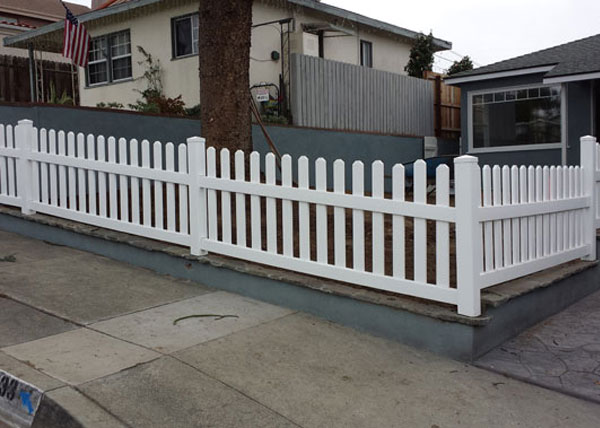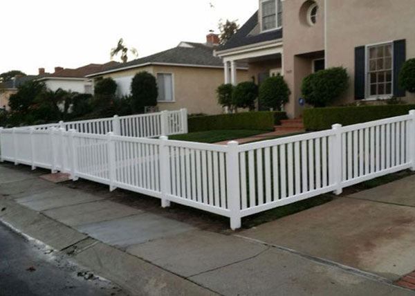 We installed this vinyl dog-ear picket fence in Manhattan Beach. Our custom-built picket fences are personalized to complement your front yard.