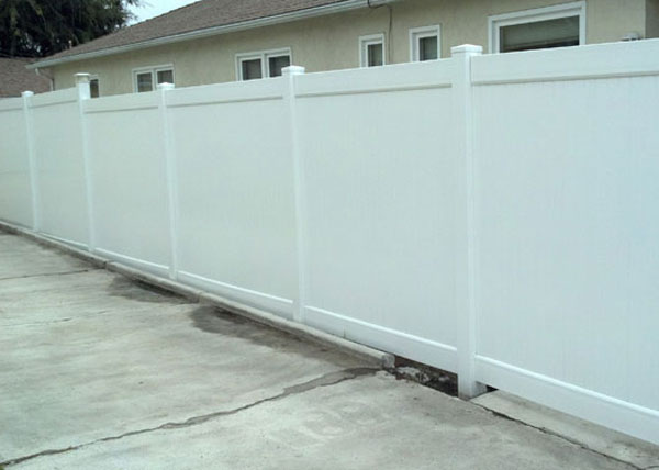 This 5 ft tall white privacy vinyl fence runs along side of a home in Torrance, CA.